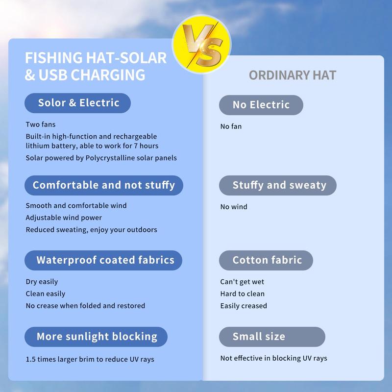 Our 2025 Solar Fan Outdoor Fishing Hat combines powerful dual fans with solar and battery power, giving you refreshing airflow and reliable sun protection wherever your adventures take you.